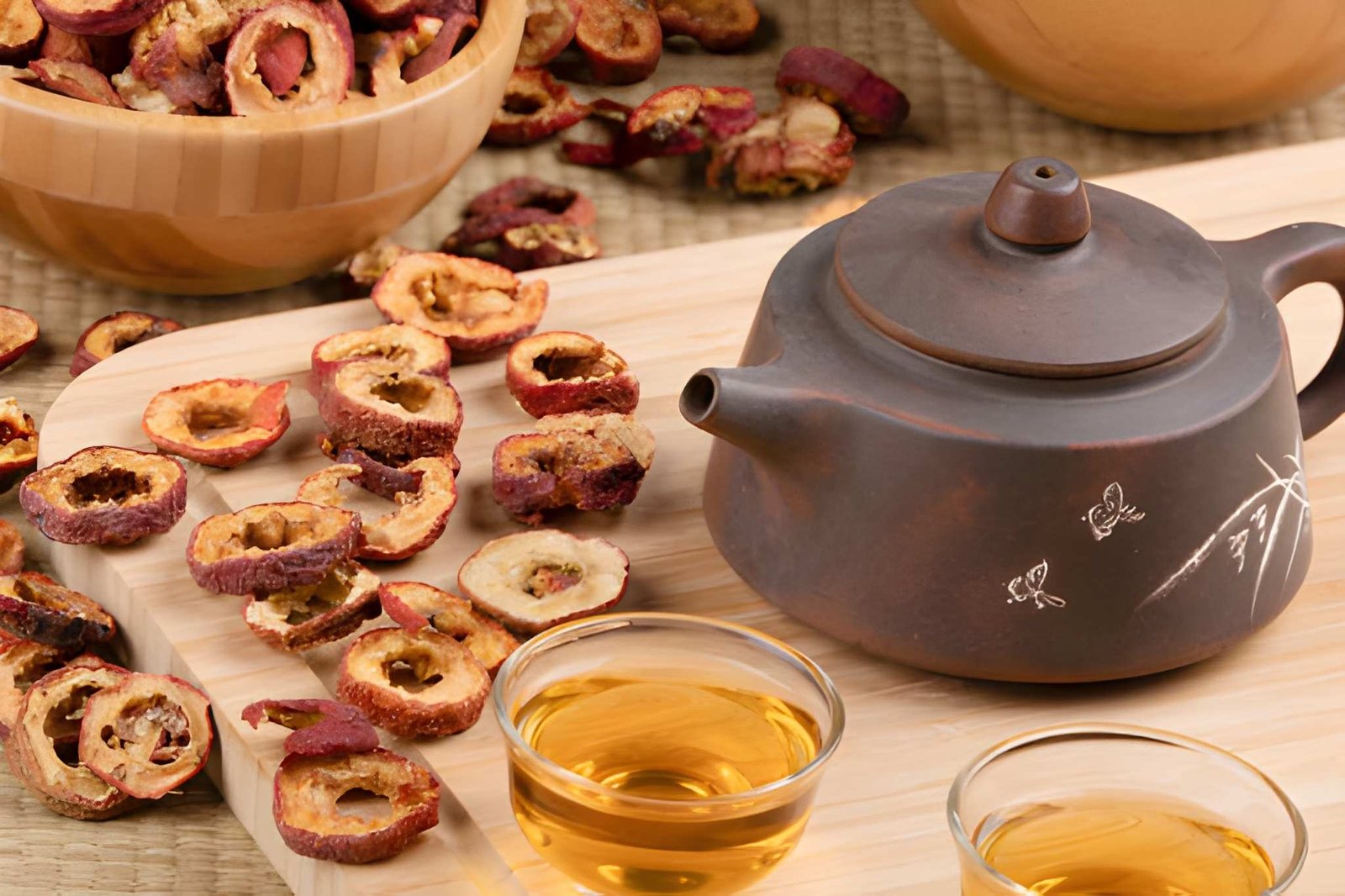 Selain dijadikan teh, shan zha juga sering diolah menjadi cemilan tradisional seperti Tanghulu.